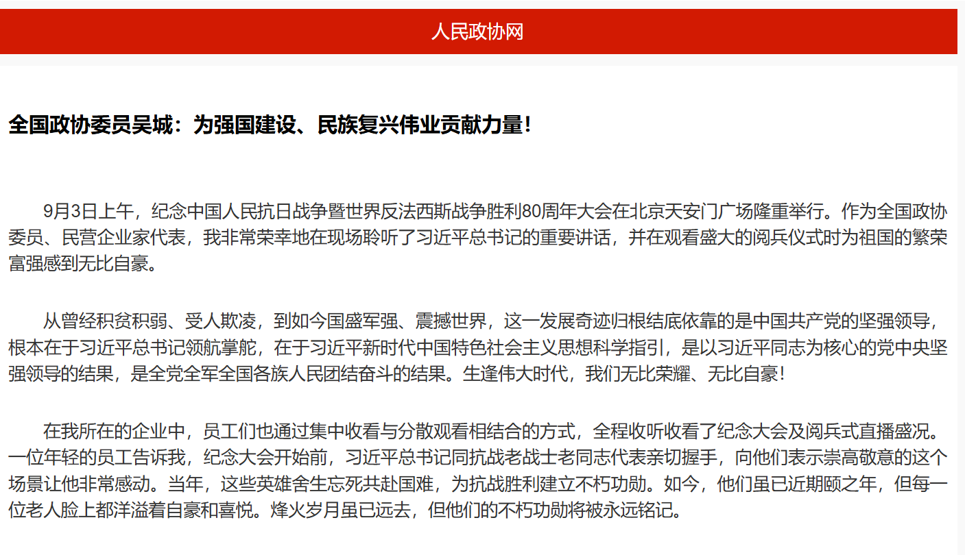 全國政協(xié)委員吳城:為強國建設(shè)、民族復(fù)興偉業(yè)貢獻(xiàn)力量!